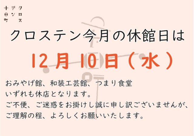 12月10日(水)は休館日となります